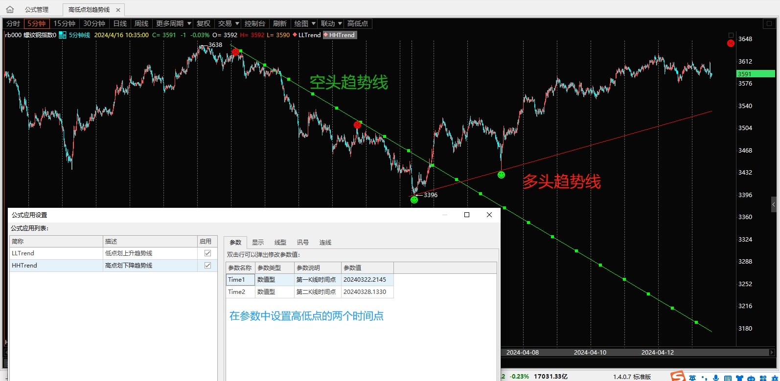 开拓者TBQuant 高低点划趋势线策略源码 TBQ